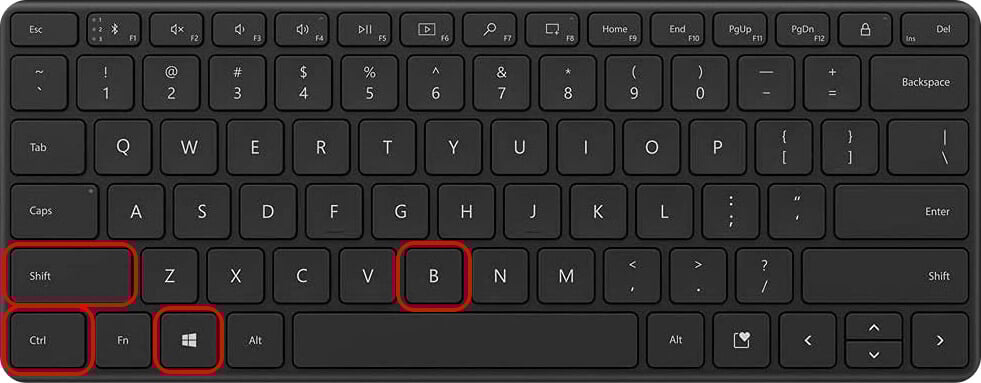 Disconnect all devices or accessories plugged into your laptop and press the Windows logo key + Ctrl + Shift + B.