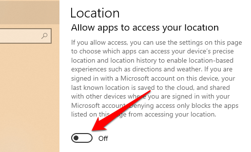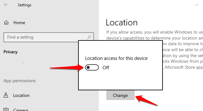 Go to Settings > Privacy > Location to check your device’s location settings. Click the Change button and toggle on Location access for this device.