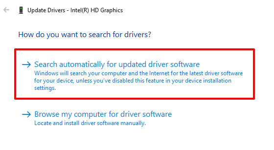 Windows will scan your computer and the internet for an updated version of your graphics driver. If Windows doesn’t find any available update, return to the Device Manager and uninstall the graphics driver.