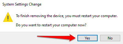 Restart your computer when prompted to. Before you click Yes, make sure you close all active programs so you don’t lose unsaved data.