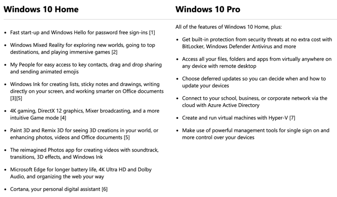 The biggest difference between Windows 10 Pro vs Home comes down to what are commonly referred to as enterprise features. Basically, these are all special features that are most useful to large companies.
