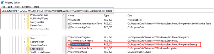 **Common Startup **should have the data value: C:ProgramDataMicrosoftWindowsStart MenuProgramsStartup