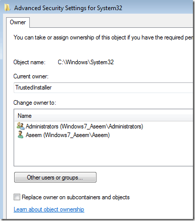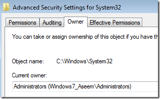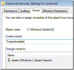 Next click on the Owner tab and you’ll now see that the current owner is TrustedInstaller.