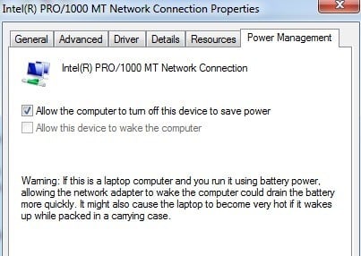Next, click on the **Power Management **tab and uncheck the box that says Allow this device to wake the computer.