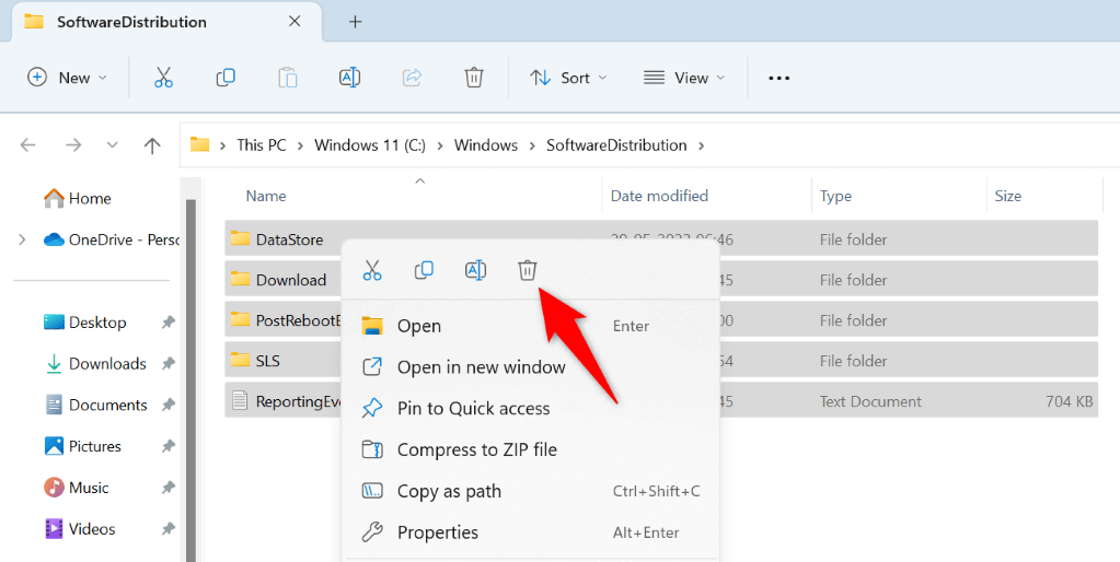 - Right-click a selected file and choose Delete (a trash can icon).