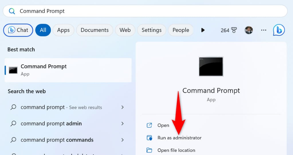- Open the Start menu, find Command Prompt, and select Run as administrator.