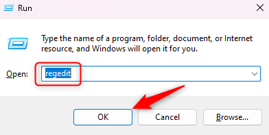 If you’re sure you want to edit the Registry, press Windows + R to open the Run app, type regedit in the text box, and then click Ok.