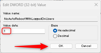 - Double-click the NoAutoRebootWithLoggedOnUsers.